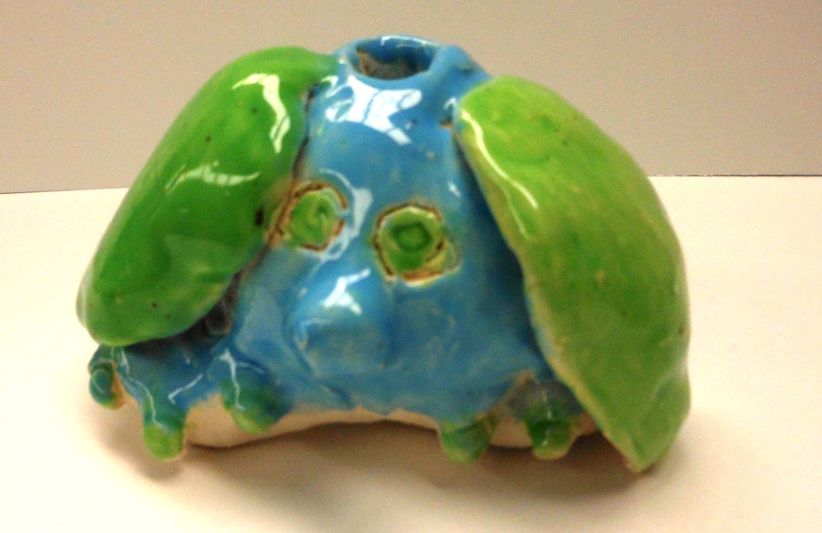 Clay! Students are always excited to see the clay come out. It is even more exciting to see the final pieces glazed and fired! 8th graders recently completed a ceramics project that was originally started right before the Christmas holidays. They studied the art of PreColumbian cultures in Central and South America, and then based a design on the zoomorphic vessel. PreColumbian artists made clay containers in the shapes of animals such as jaguars, birds, and reptiles. Sometimes the vessels were ceremonial and sometimes they were for everyday use: